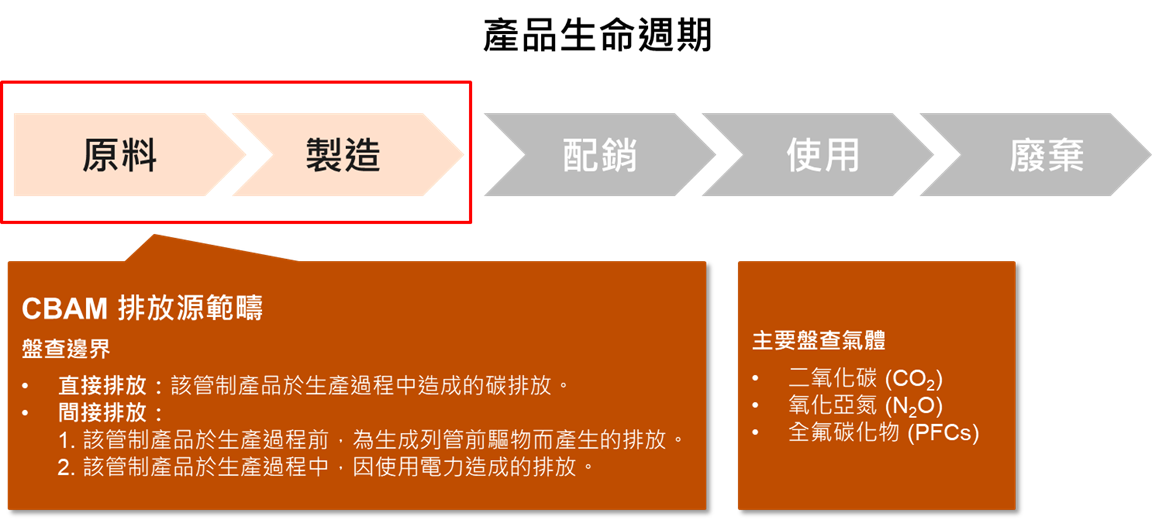 目前 CBAM 首波涵蓋之產業包括以下六大產業,以及部分下游產品 (如螺絲、螺栓等)。