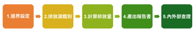 企業進行組織型溫室氣體盤查時,可依序執行五大步驟:
